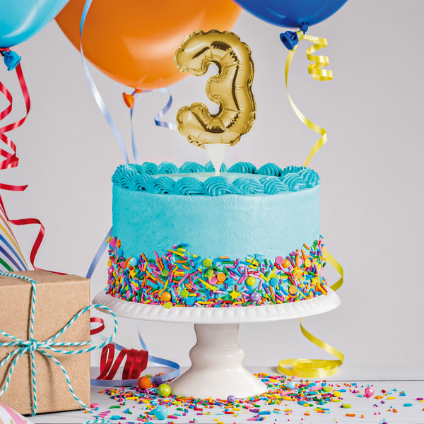 Folienballon - Kuchenpicker Zahl 3 gold - 22,8 cm / selbstaufblasend