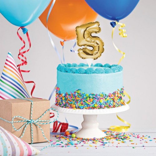 Folienballon - Kuchenpicker Zahl 5 gold - 22,8 cm / selbstaufblasend