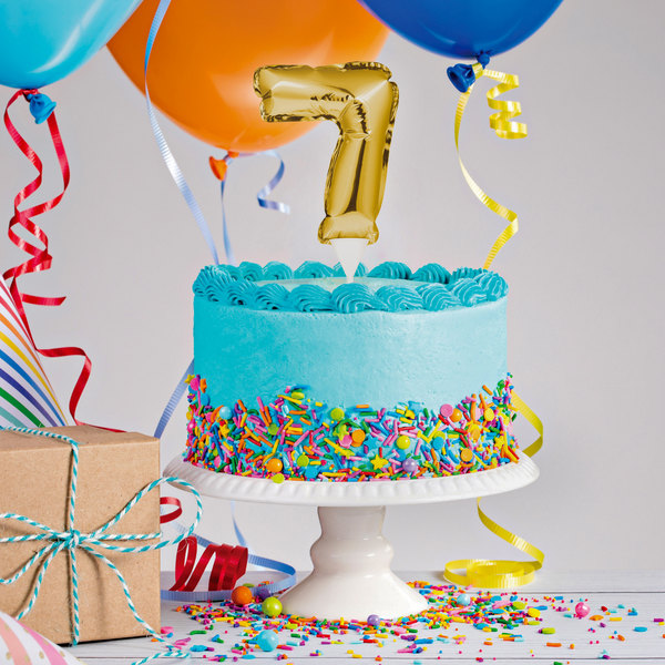 Folienballon - Kuchenpicker Zahl 7 gold - 22,8 cm / selbstaufblasend