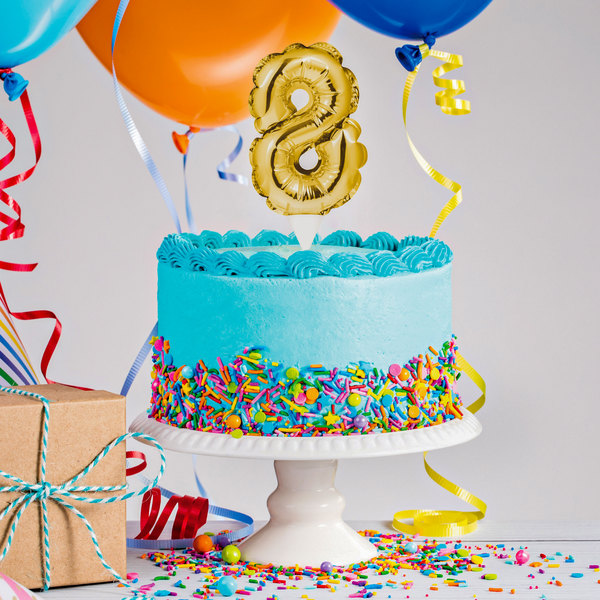 Folienballon - Kuchenpicker Zahl 8 blau - 22,8 cm / selbstaufblasend