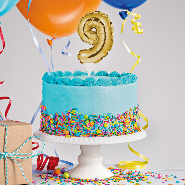 Folienballon - Kuchenpicker Zahl 9 gold - 22,8 cm / selbstaufblasend