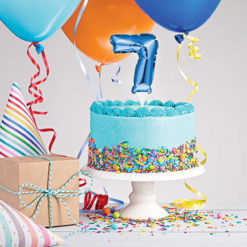 Folienballon - Kuchenpicker Zahl 7 blau - 22,8 cm / selbstaufblasend