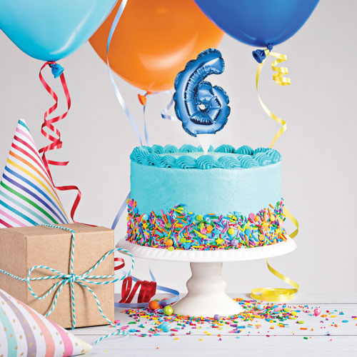Folienballon - Kuchenpicker Zahl 6 blau - 22,8 cm / selbstaufblasend
