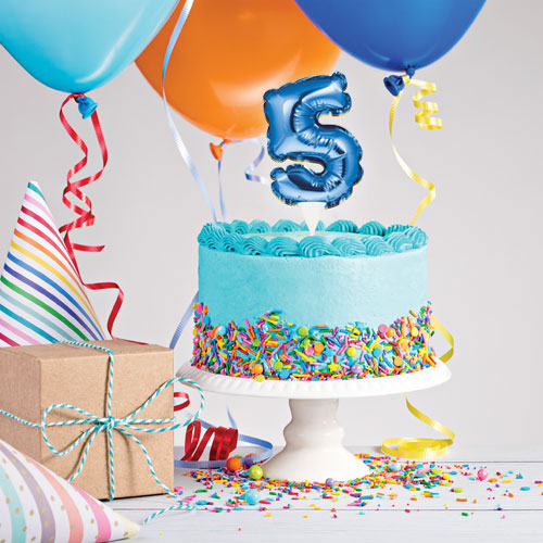 Folienballon - Kuchenpicker Zahl 5 blau - 22,8 cm / selbstaufblasend