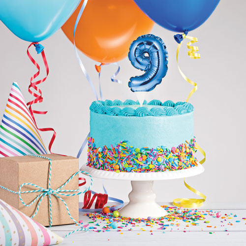 Folienballon - Kuchenpicker Zahl 9 blau - 22,8 cm / selbstaufblasend