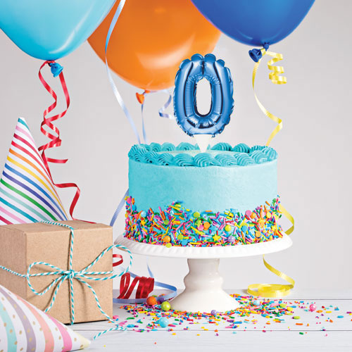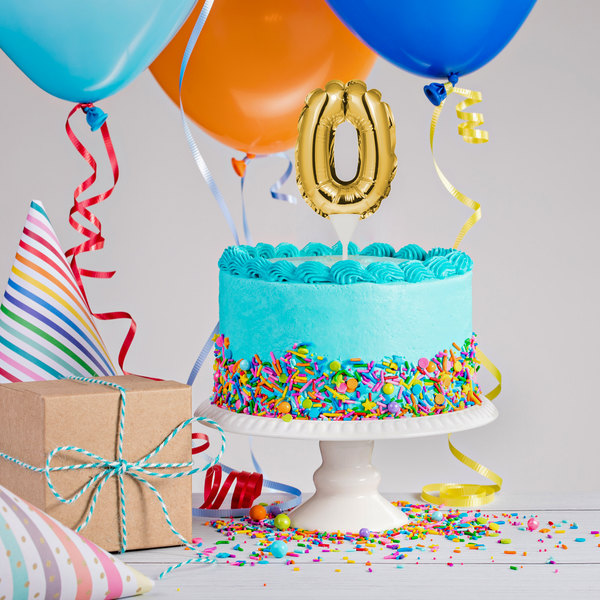 Folienballon - Kuchenpicker Zahl 0 blau - 22,8 cm / selbstaufblasend
