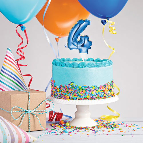 Folienballon - Kuchenpicker Zahl 4 blau - 22,8 cm / selbstaufblasend