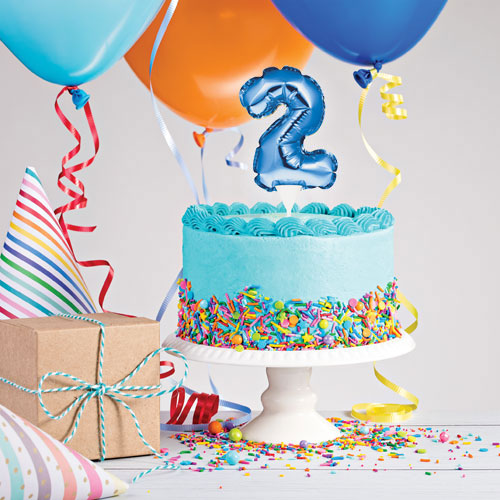 Folienballon - Kuchenpicker Zahl 2 blau - 22,8 cm / selbstaufblasend